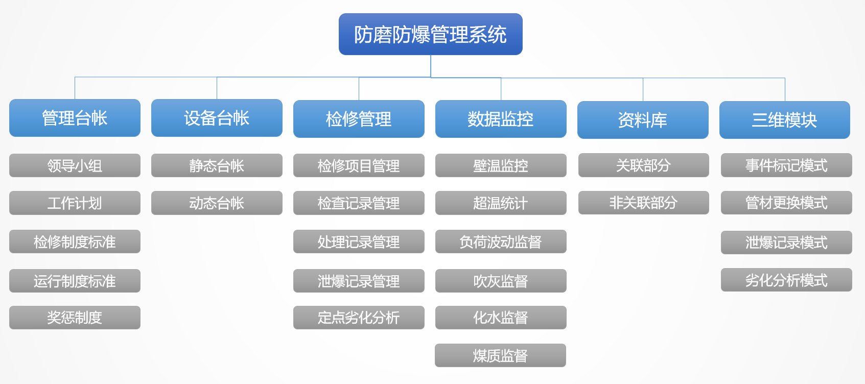 我國火力發(fā)電廠各種事故中,鍋爐事故約占發(fā)電廠總事故的70%以上,而過熱器、再熱器、省煤器、水冷壁四類管(簡稱“四管”)泄漏與爆破事故時有發(fā)生,在眾多事故中出現(xiàn)較多,約占鍋爐總事故的70%以上,成為困擾火力發(fā)電廠安全生產(chǎn)的一大難題。針對這一問題,云酷科技設計了防磨防爆可視化管理系統(tǒng)。